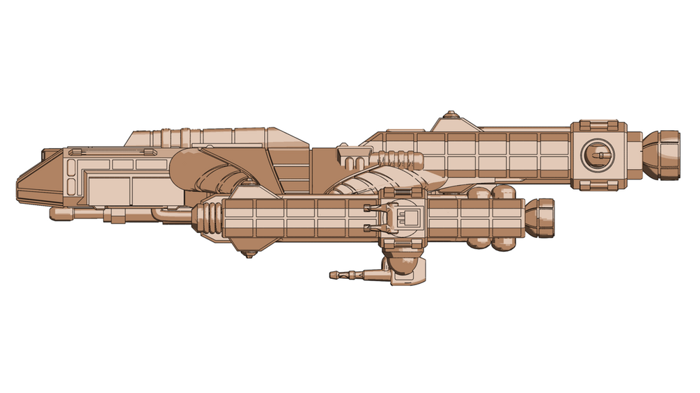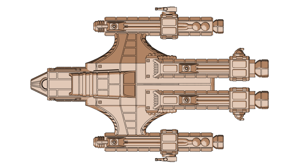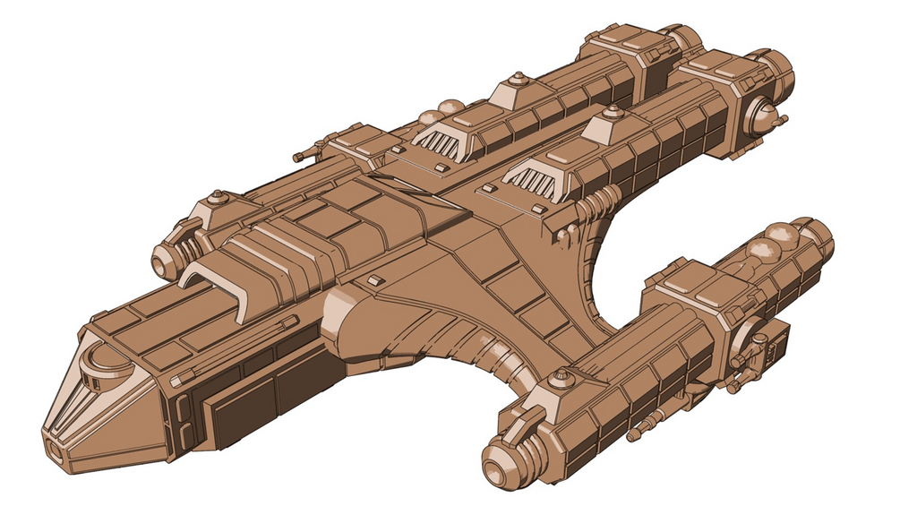 The Raider Dragonship is a large, heavily armed capital ship used by pirates and privateers alike. These ships are large enough to be equipped with their own jump engines, a rarity for most raider vessels. They operate two flights of fighters, typically Delta-V but the hangar of a Dragonship can easily handle larger fighters (such as the Double-V).